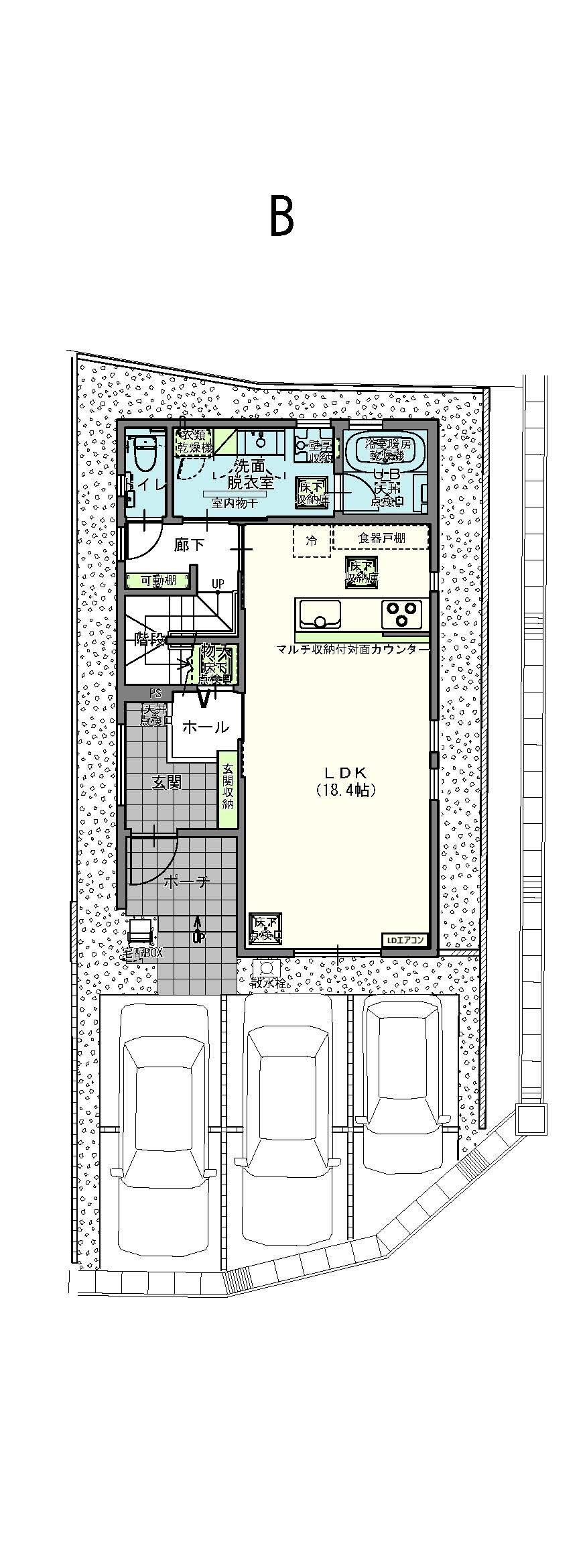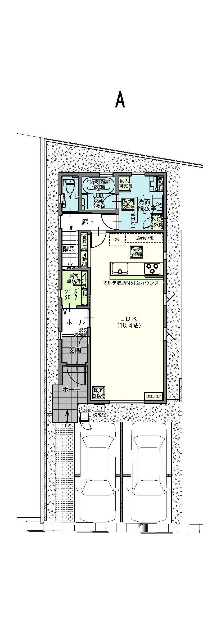 日当りの良い角地。ゆとりの駐車場から家に入れば広い玄関がお出迎え。
