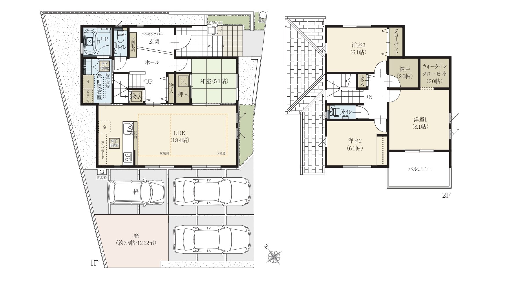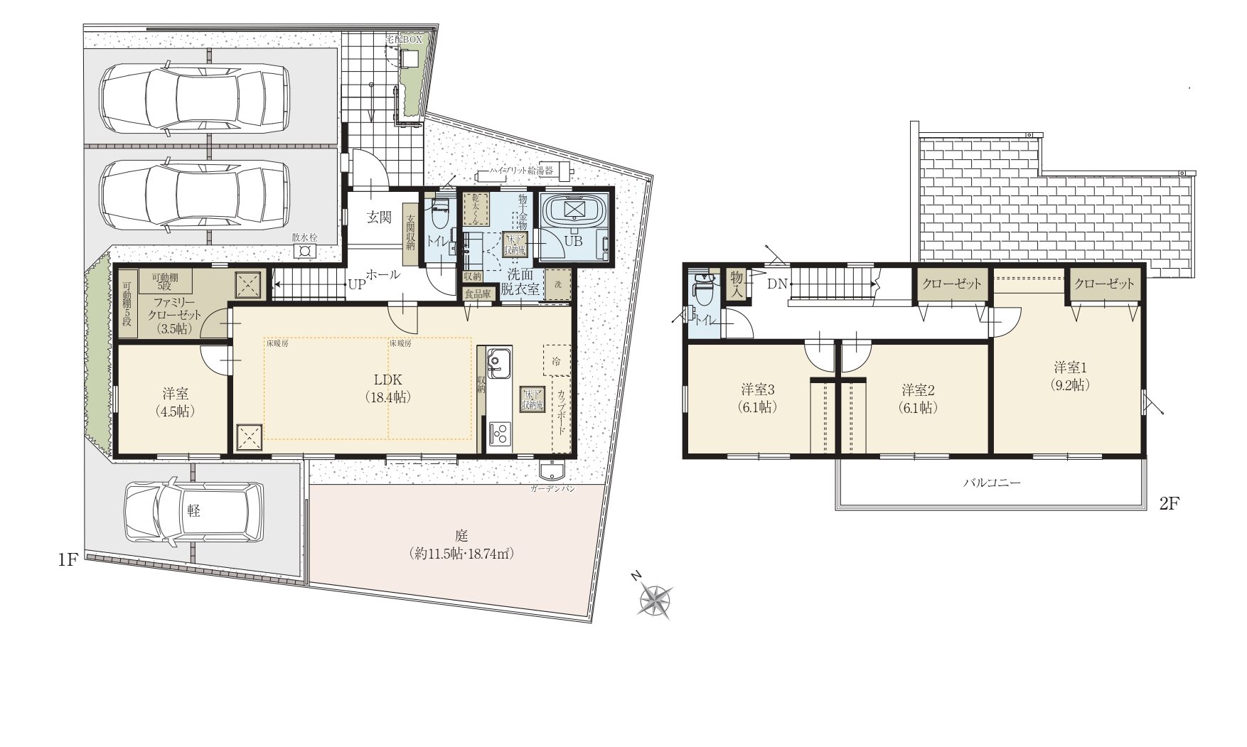 大府駅徒歩12分。全邸宅に駐車場3台確保。